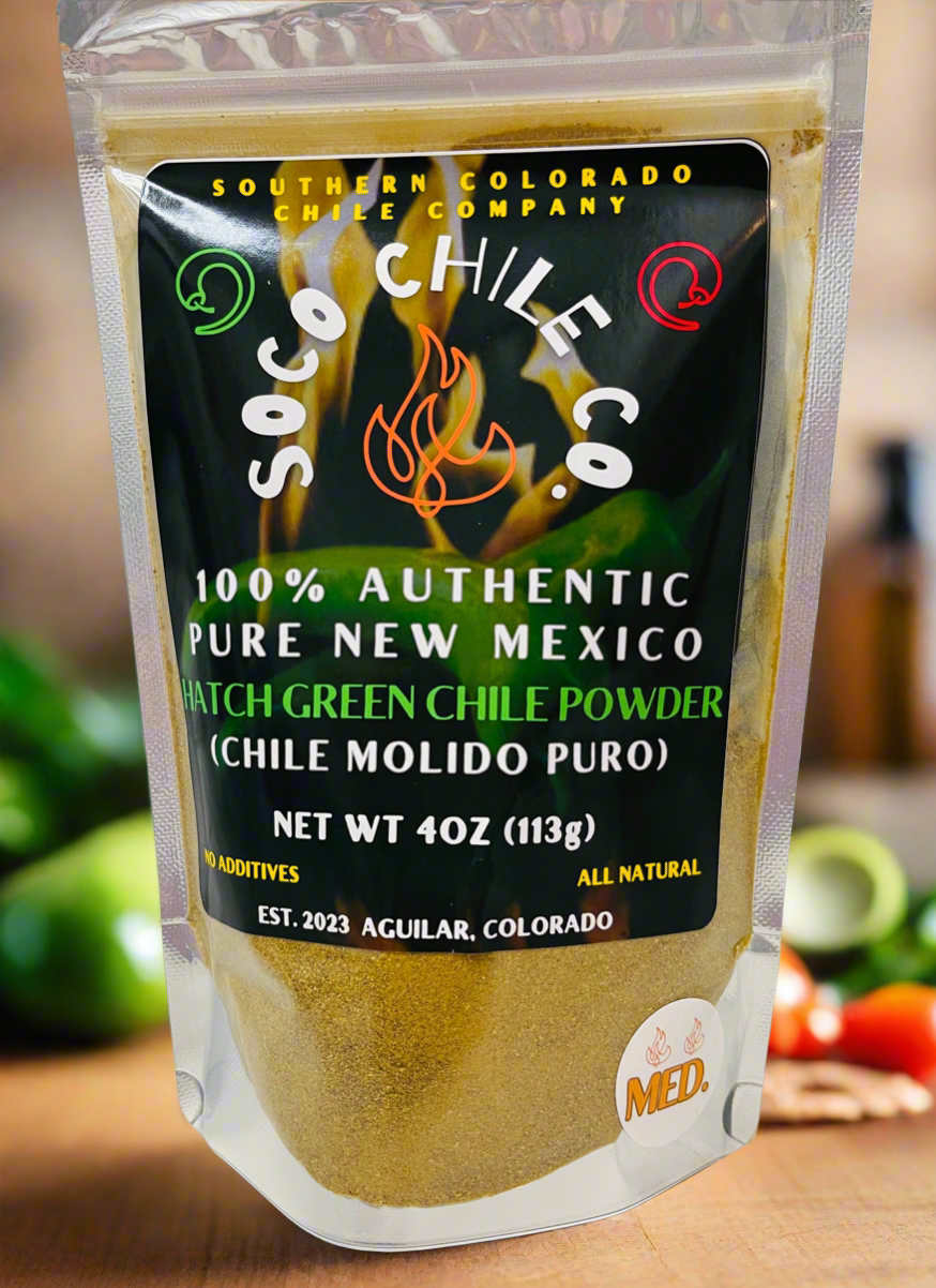 Introducing our 100% Authentic Hatch New Mexico Green Chile Powder, expertly crafted to bring the bold, vibrant flavors of the Southwest right to your kitchen. Sourced from the sun-drenched fields of New Mexico, our premium quality, regionally grown and dehydrated chile powders deliver a unique taste that can transform any dish.